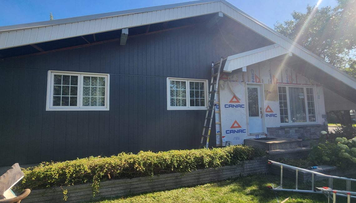 2. Installation de revêtement Canexel vertical : Un revêtement en Canexel de couleur gris charbon a été installé. Ce choix moderne et raffiné offre une excellente résistance aux conditions climatiques du Québec tout en nécessitant peu d’entretien.